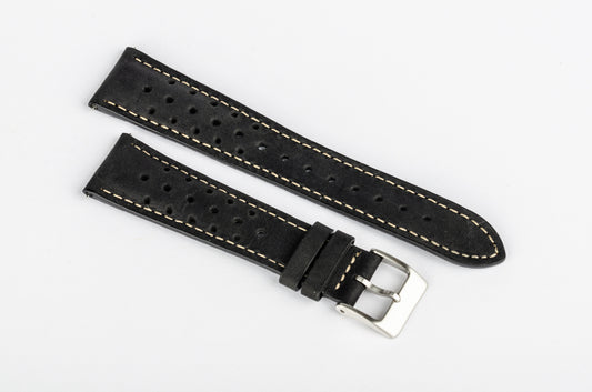 Our selection of watch bands with roots in the racing world. These watch bands are perfect for all racing chronographs, but they probably shine brightest on an early Rolex Cosmograph or Tag Heuer Carrera.